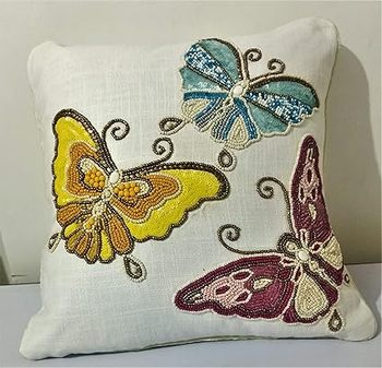 Funda de cojín de terciopelo con lentejuelas y cuentas de mariposa Aqua, funda de almohada suave y elegante para sala de estar, decoración tradicional moderna para el hogar