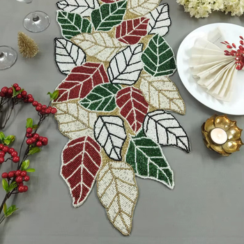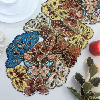 ראנר שולחן חרוזים דקורטיביים מודרני בעבודת יד עם רקמה וחרוזי זכוכית ידידותית להתאמה אישית לשימוש ביתי & מלון