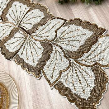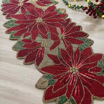 Handmade Natal Mesa RunnerBeaded Poinsétia Flora