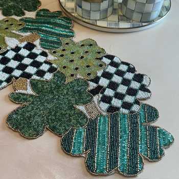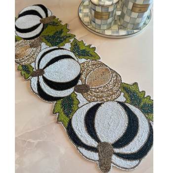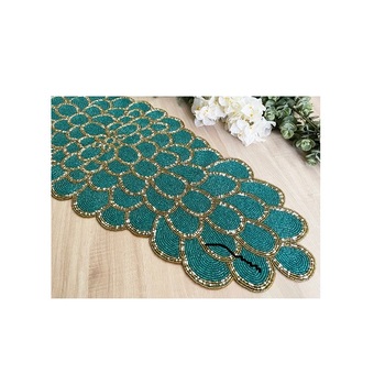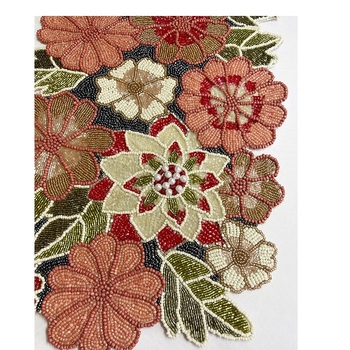El yapımı boncuklu nakış masa koşucu pamuk kumaş üzerinde tohum boncuk sanat ile benzersiz şenlikli yemek koşucu
