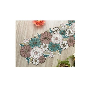 Yüksek kaliteli çiçek masa koşucu dokuma dekoratif işlemeli boncuklu masa örtüsü için yemek masası ev dekor centerpiece